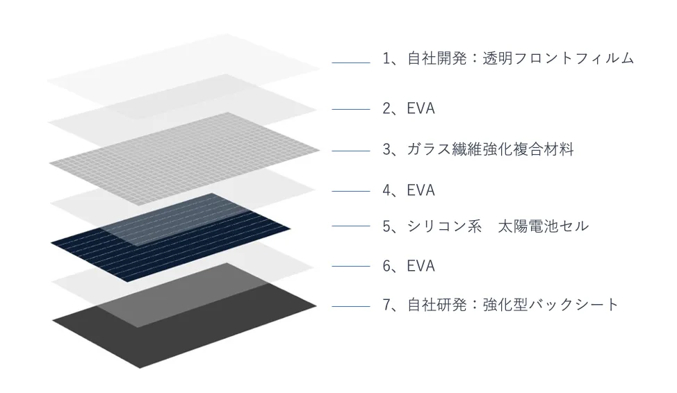 Weighing just 2.8 kg/m², these panels are 70% lighter than single-glass panels, significantly reducing transportation costs. The anti-glare design efficiently captures sunlight, and no racking system is required, enabling easy installation. Thanks to their flexible structure, these next-generation solar panels excel in a wide range of applications.
